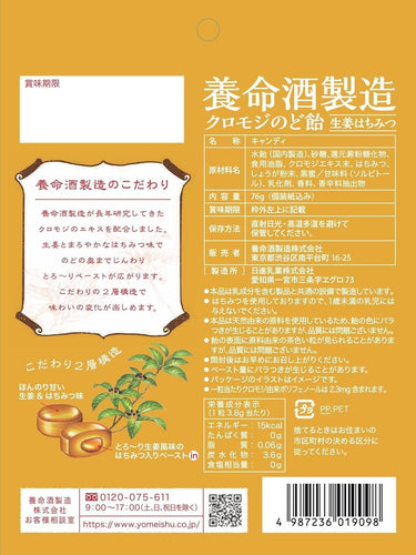 요메이슈 제조 크로모지 목캔디 생강 꿀 76g