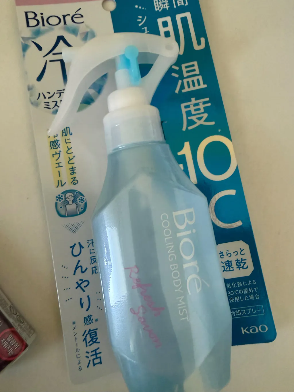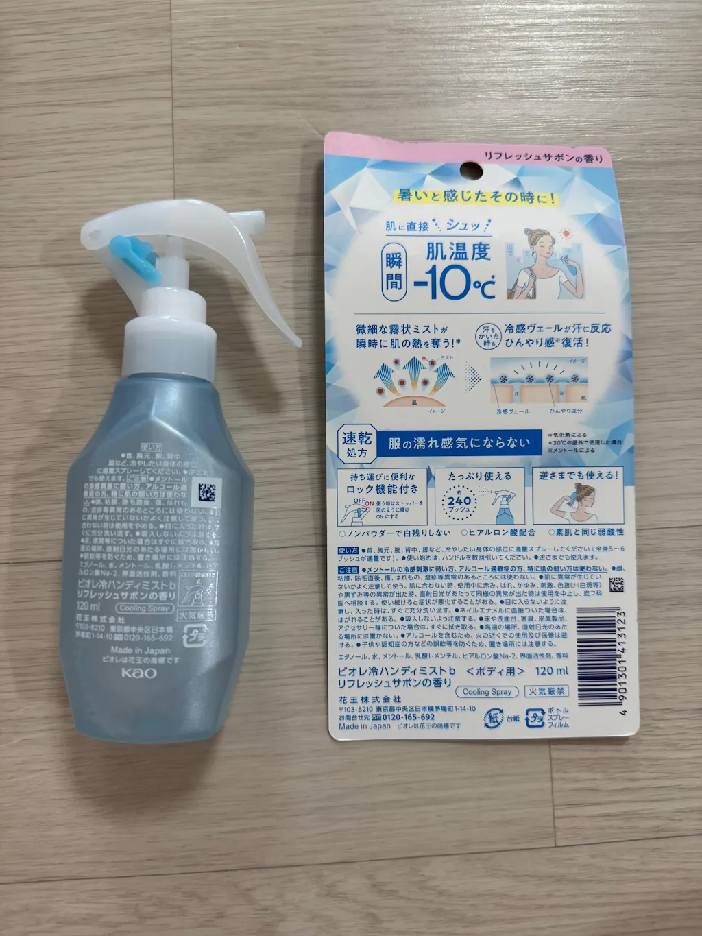 シュッと肌に浴びた瞬間、肌温度-10度(30度の屋外で使用した場合)。