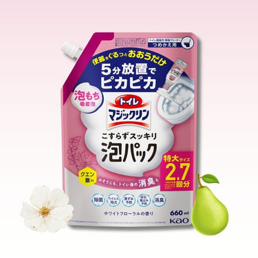 거품 지속력이 뛰어난※1 흡착 거품. 문지르지 않아도 5분 방치하면 변기가 반짝반짝!※2 변기 내 살균※3, 바이러스 제거※4, 검은 때 예방, 소변때·황변 예방, 탈취 효과도!